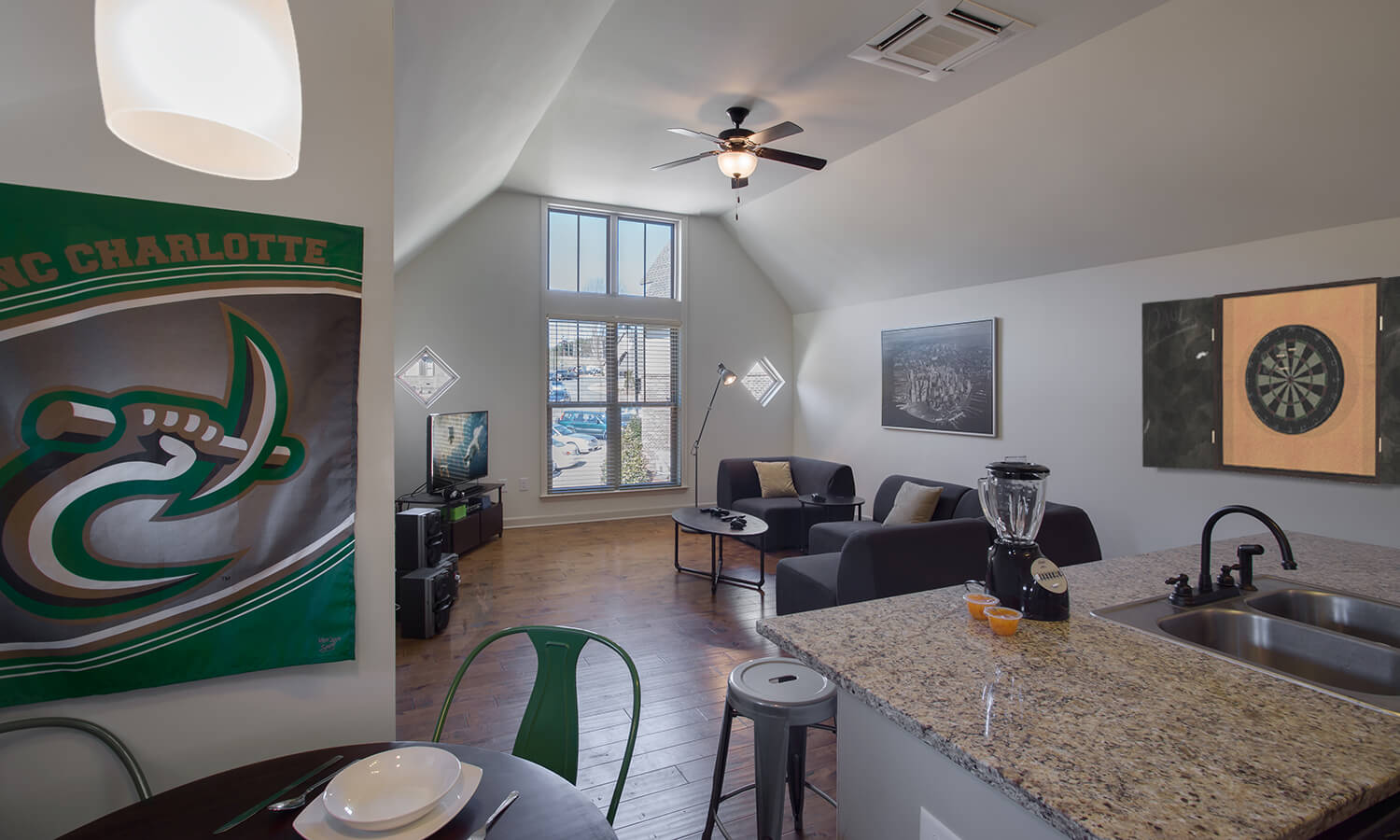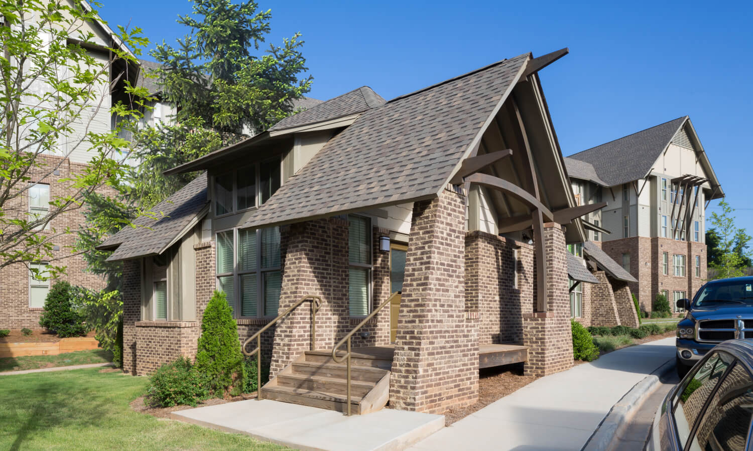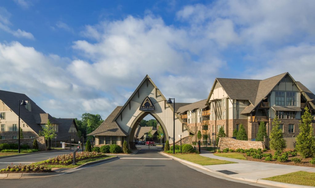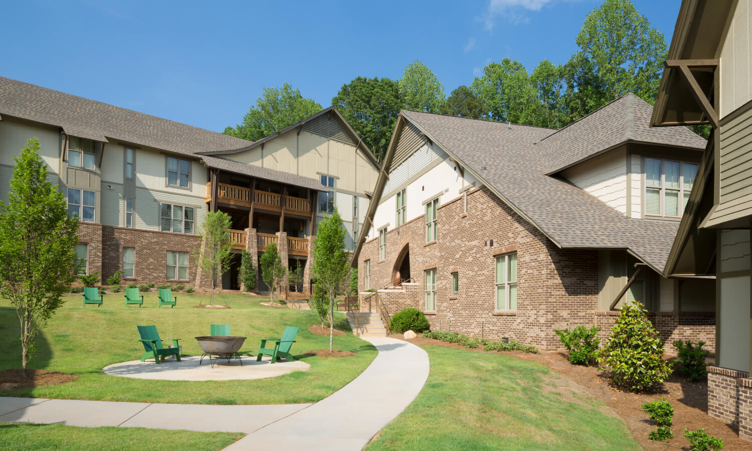 This multi-building student housing campus is remeniscent of Alpine Chalets. Seated on 50 acres of rolling piedmont adjacent to UNC Charlotte, Arcadia boasts a three floor, 14,000 sf clubhouse.